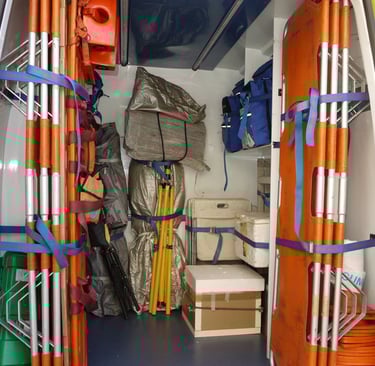 ElementoAcciónFrecuenciaBotiquínRevisar caducidades y reponer bajasMensualMochilas de intervenciónVerificar material completo y ordenadoDespués de cada usoIluminación portátilComprobar baterías y pilas de repuestoSemanalRadios / PMRPrueba de transmisión y cargaSemanalDocumentación operativaActualizar responsables y teléfonosMensual