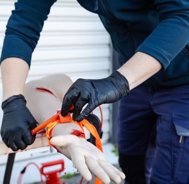 Descubre cómo aplicar primeros auxilios en casos de hemorragia masiva. Aprende a usar torniquetes y técnicas de empaquetamiento de heridas siguiendo protocolos como MARCH y Stop the Bleed, esenciales para detener el sangrado y salvar vidas rápidamente.