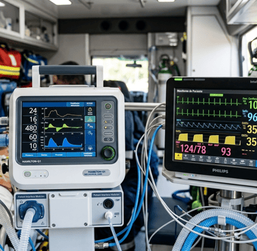 En entornos urbanos de gran escala, las ambulancias de soporte vital avanzado son el estándar para infartos de miocardio.